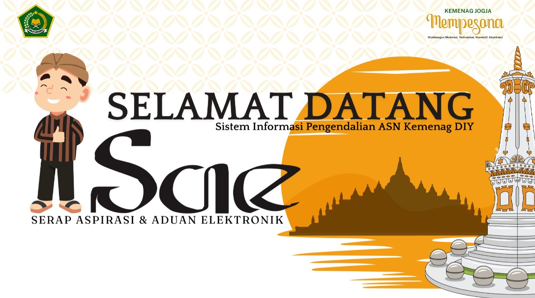 Selamat datang di SAE, sistem informasi pengendalian ASN Kantor Wilayah Kementerian Agama Daerah Istimewa Yogyakarta. Kami berdedikasi untuk memberikan layanan terbaik dalam menangani berbagai pengaduan dan aspirasi dari masyarakat.